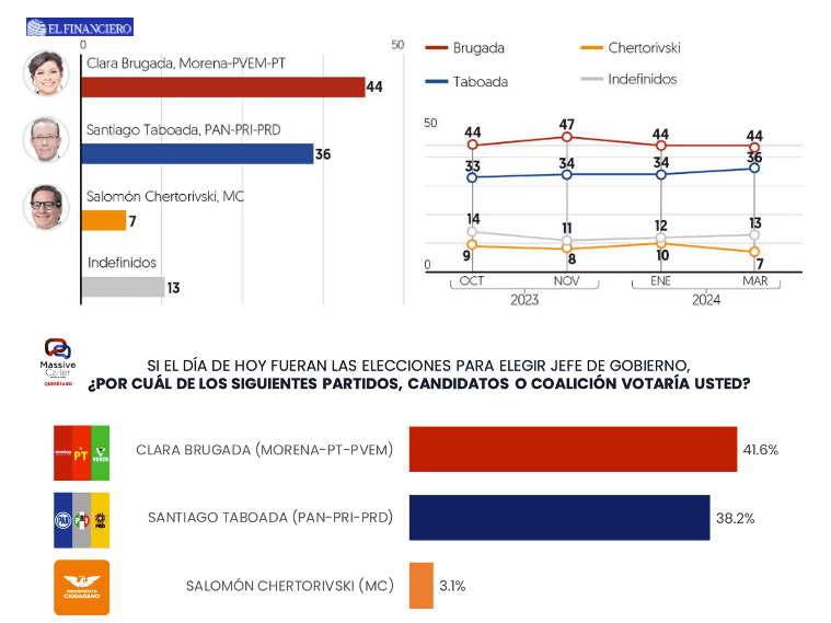 Escenario reñido rumbo a Jefatura de la CDMX entre Brugada y Taboada